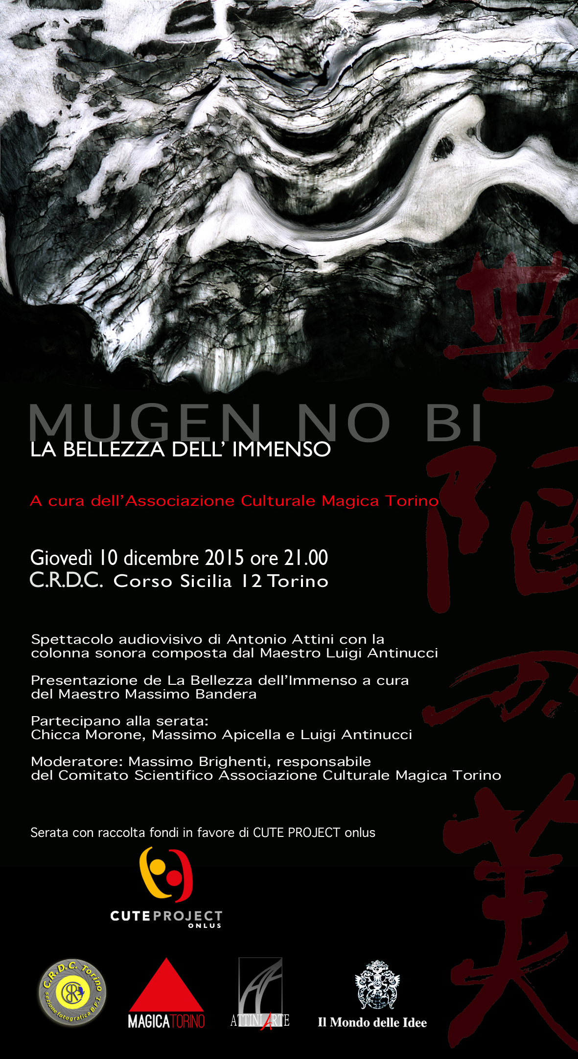 - 10/12/2015 ore 21 in Corso Sicilia 12 a Torino presso il C.R.D.C per assistere a “La bellezza dell’immenso” uno spettacolo audiovisivo di Antonio Attini.